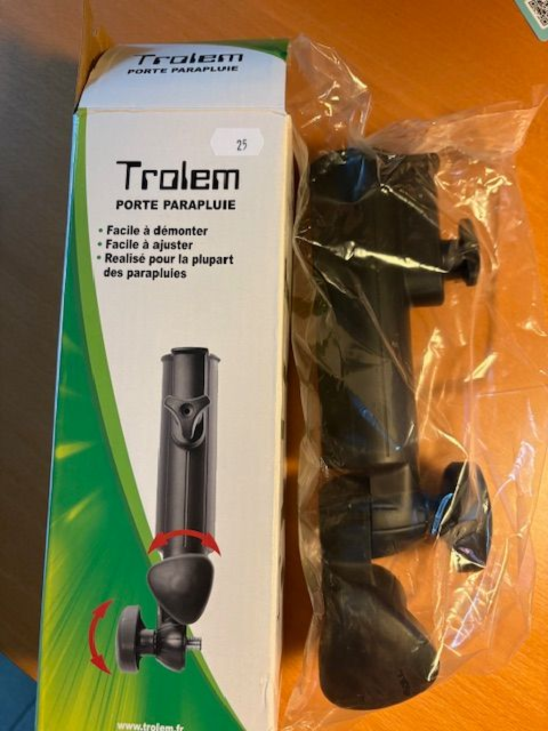 Je vends un porte-parapluie neuf (sans fixation): 20 €.
